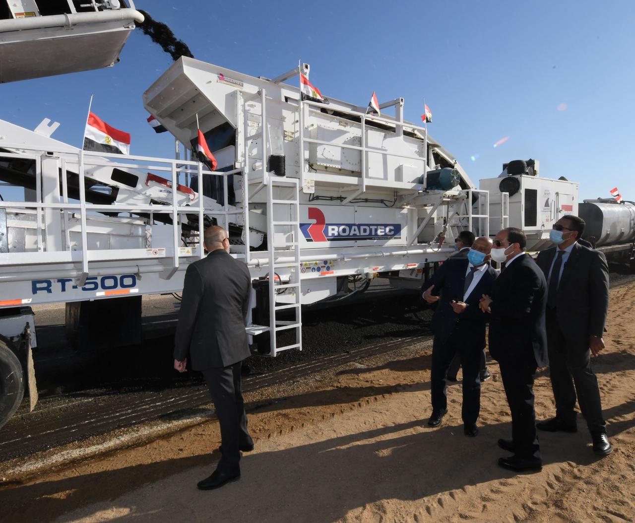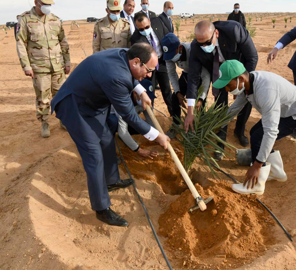 كما تفقد الرئيس السيسي مشروعات استصلاح الأراضي الزراعية ومزارع القمح والنخيل بمنطقة توشكى بجنوب الوادي.