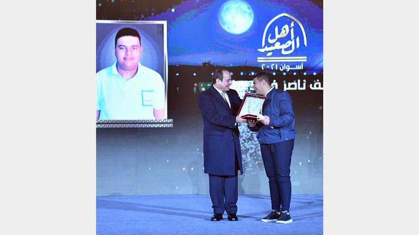 كما قام الرئيس بتكريم فريق الجامعة الألمانية بالقاهرة القائم على عمل تصميم الهوية البصرية لمدينة أسوان، كما كرم الرئيس مجموعة من رموز الشباب من أبناء الصعيد.