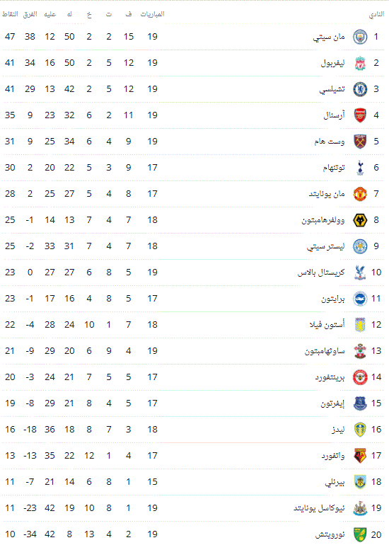 ترتيب جدول الدوري الانجليزي