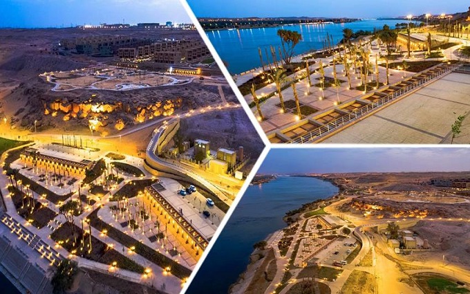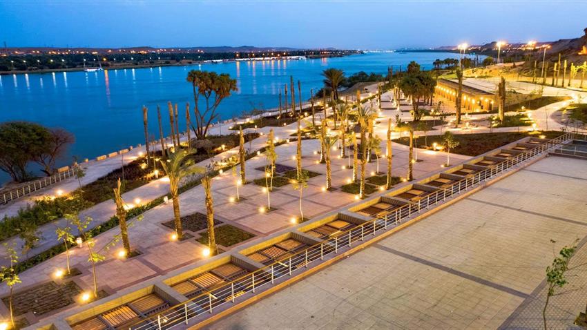 • الممشى السياحي بطول ٤،٥ كم، بتكلفة ٤٥٠ مليون جنيه، ويضم بازارات سياحية، ومحلات تجارية، وكافيهات، ومناطق خضراء، ومراسي سياحية، ومناطق ألعاب أطفال، ومسارات حركة للمشاة، وبرجولات خشبية، وأماكن انتظار السيارات لخدمة جميع أهالي أسوان.