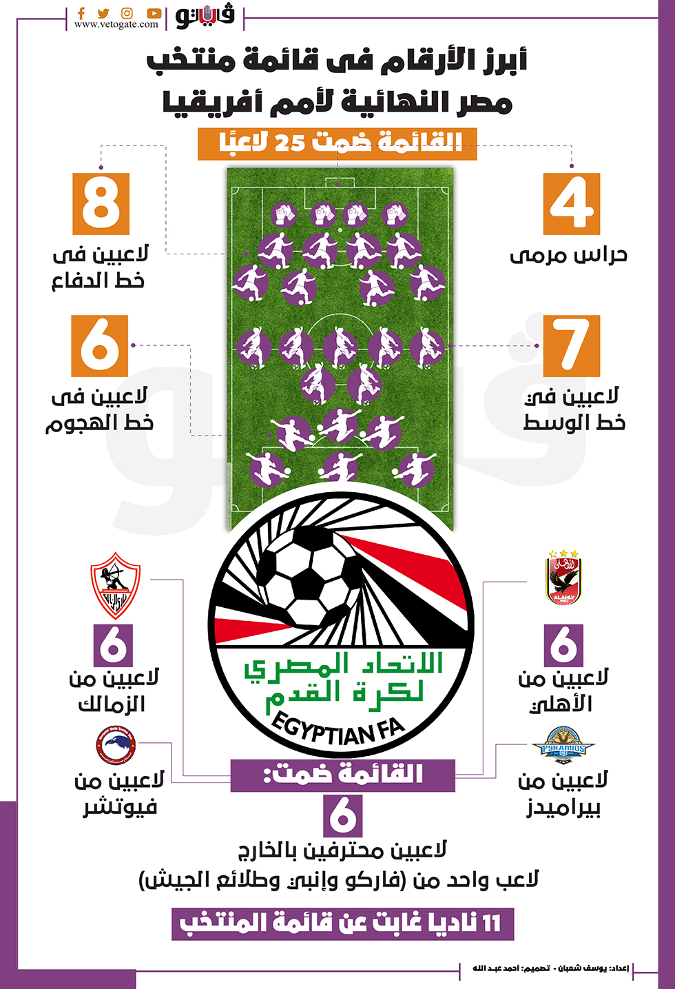 أبرز الأرقام فى قائمة منتخب مصر النهائية لأمم أفريقيا| إنفوجراف الأربعاء 29/ديسمبر/2021 - 09:47 م 12/29/2021 9:47:26 PM منتخب مصر الأول لكرة القدم يوسف شعبان شارك طباعة 18 حجم الخط شارك طباعة منتخب مصر الوطنى كارلوس كيروش أخبار بطولة أمم أفريقيا بالكاميرون عبدالله السعيد محمد صبحي