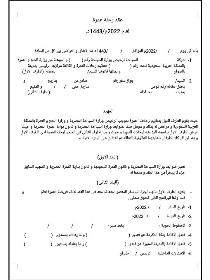 ننشر عقود العمرة المقرر توقيعها بين شركات السياحة والراغبين في السفر