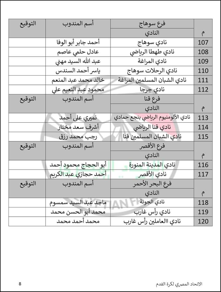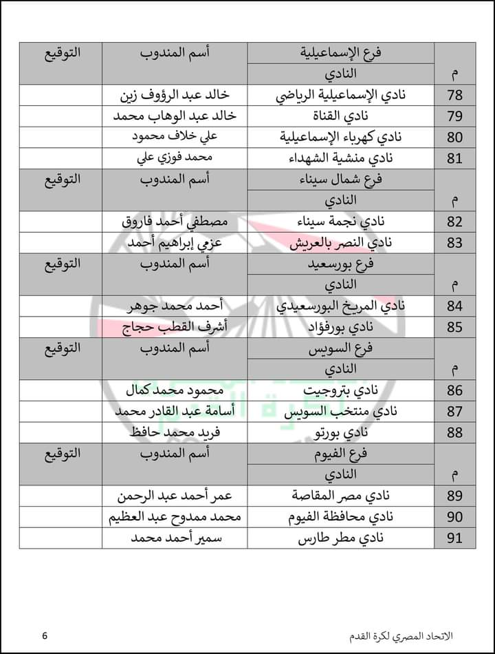 فيما تم استبعاد مندوبي ناديي أبو كساه والنصر للتعدين لعدم اكتمال الشروط، ولم ترسل أندية اتحاد الشرطة والمصري والإنتاج الحربي خطابات بمندوبين لها.