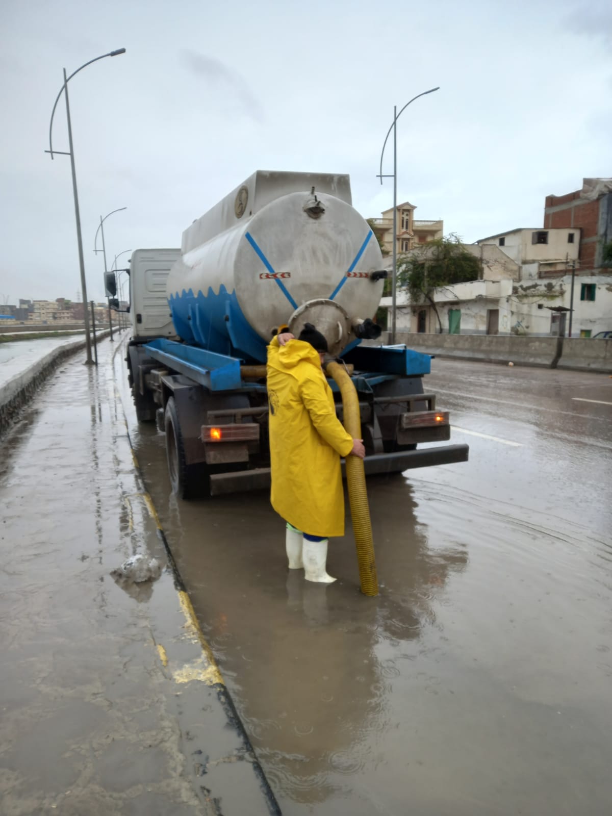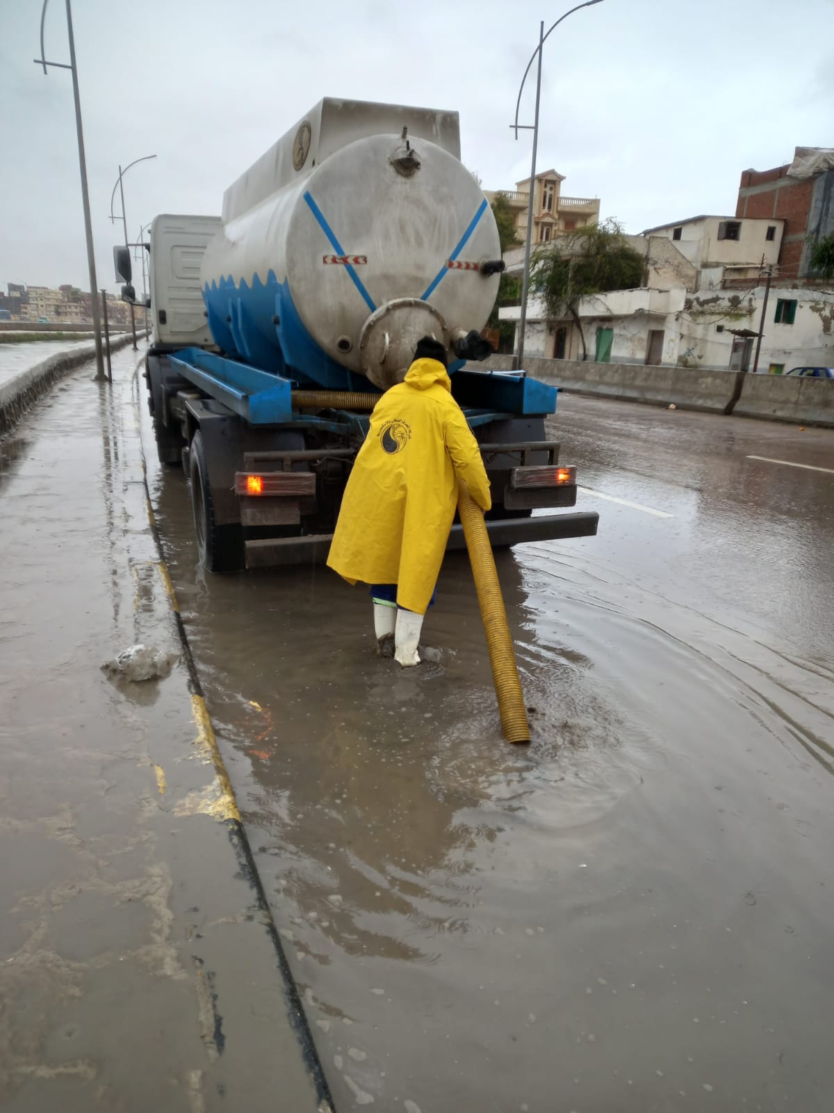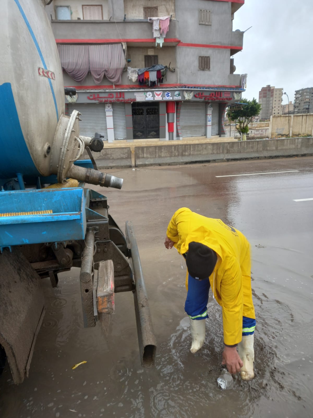 وأكدت شركة الصرف الصحي بالإسكندرية، على استمرار تمركز معدات وفرق الطوارئ في جميع أنحاء المحافظة علي مدار ٢٤ ساعة للعمل علي الإسراع في رفع مياه الأمطار حال تجمعها واستمرار أعمال تطهير البيارات والمصارف على مدار الساعة ومتابعة مناسيبها.