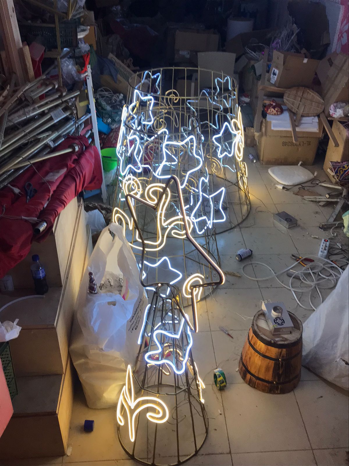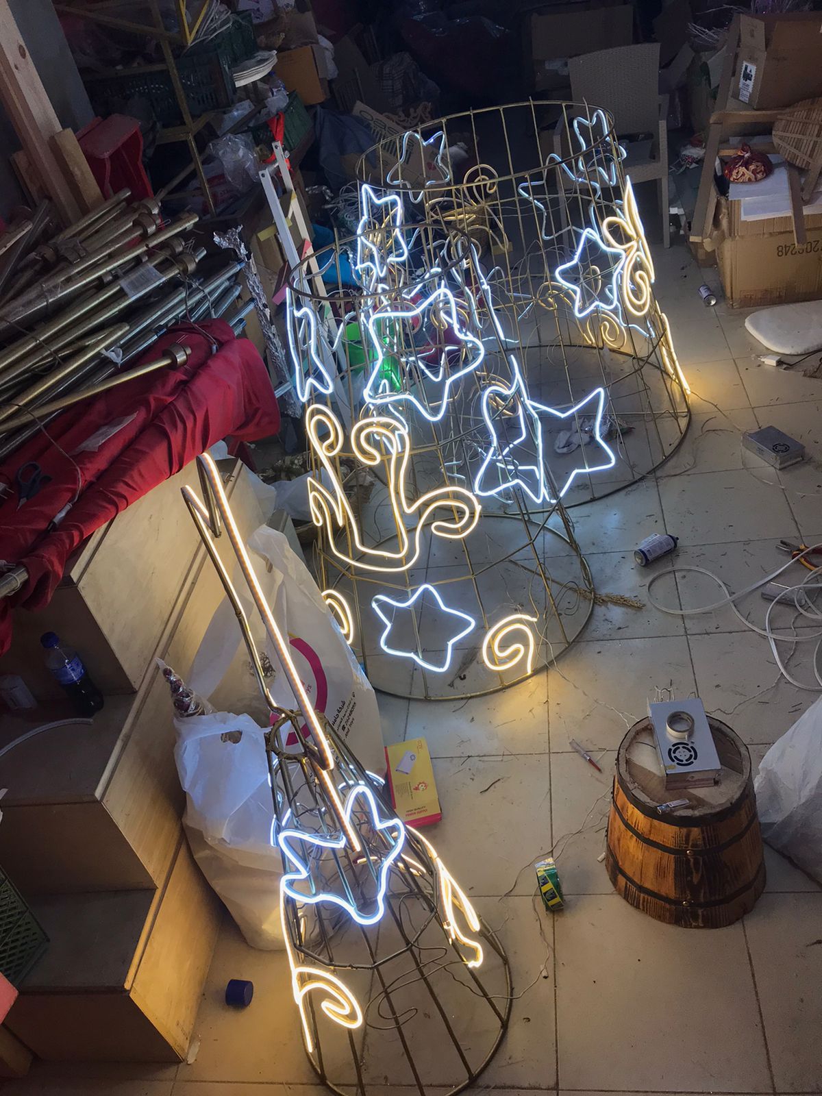 واستخدمت امنية خامات صلبة لعمل شجرة الميلاد وزينة راس السنة حيث اعتمدت الحديد حيث يتم تشكيله لدى الحداد ثم رشه وتزيبنه بالأنوار والأشكال المميزة مثل سانتا كلوز والكرات الملونة والأجراس وأغطية رأس بابانويل والورود ورجل الثلج والغزلان.