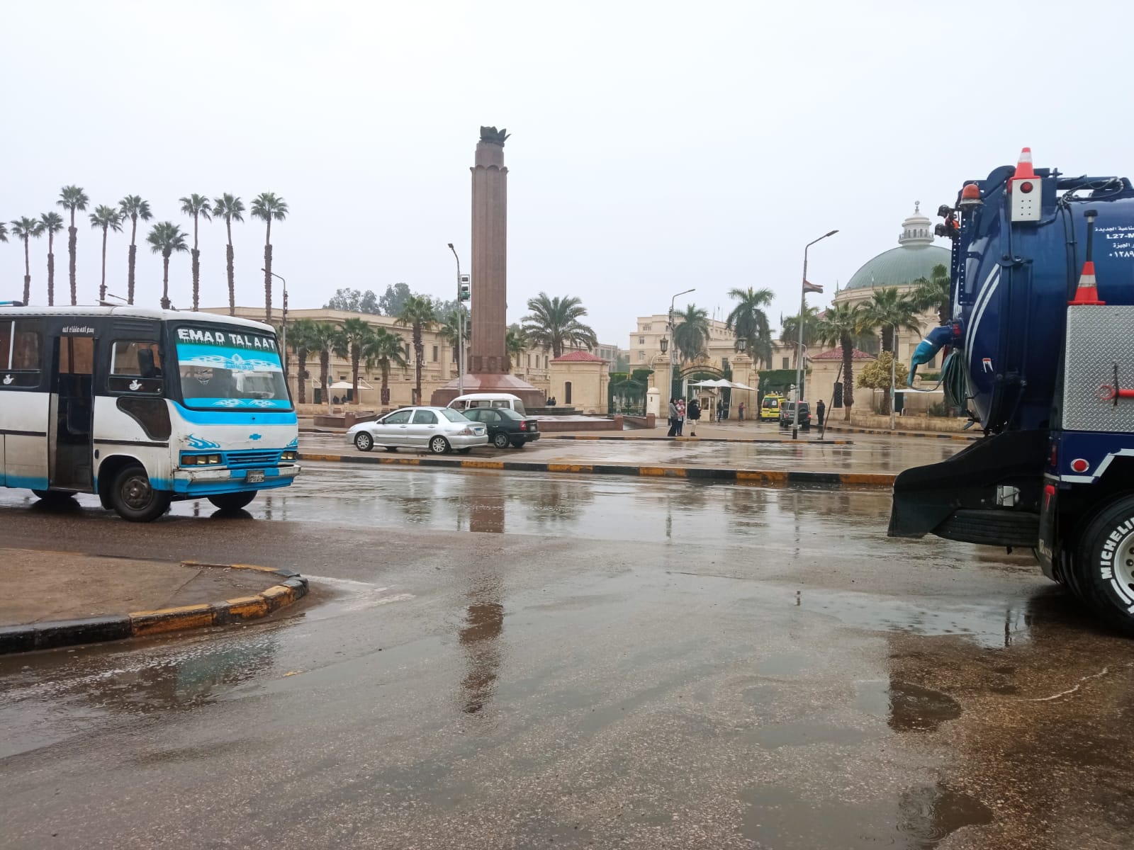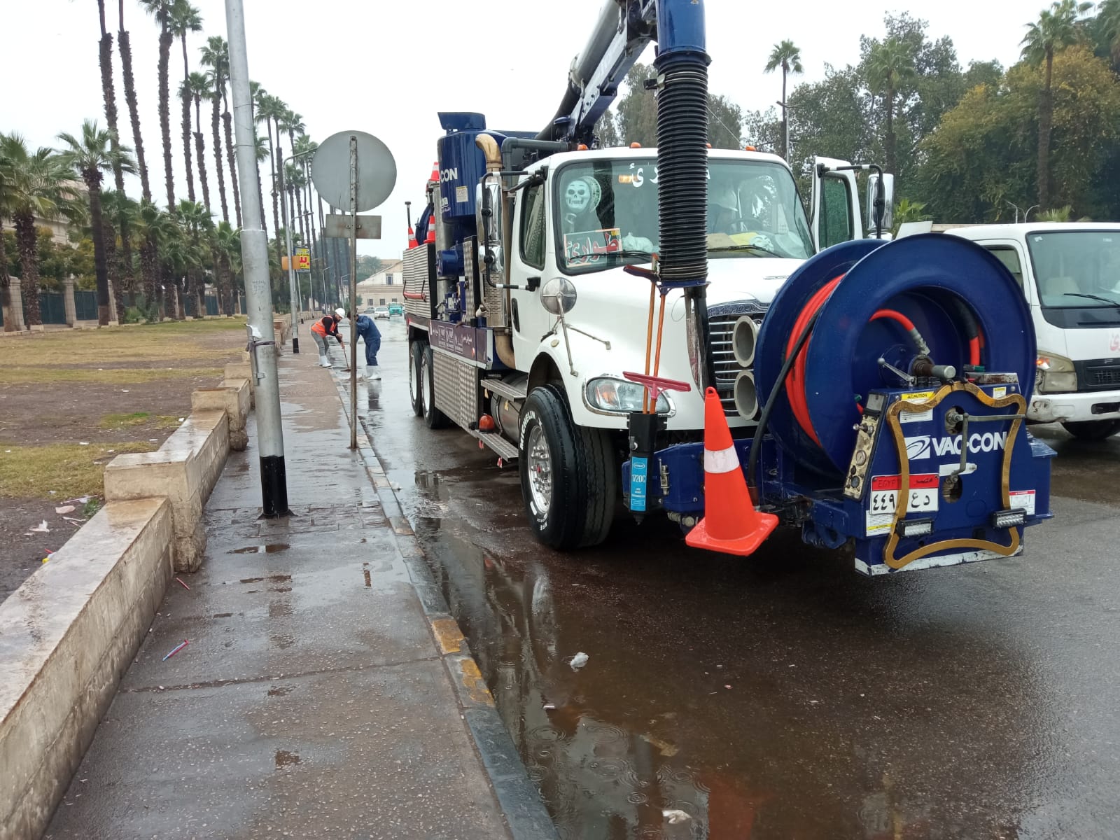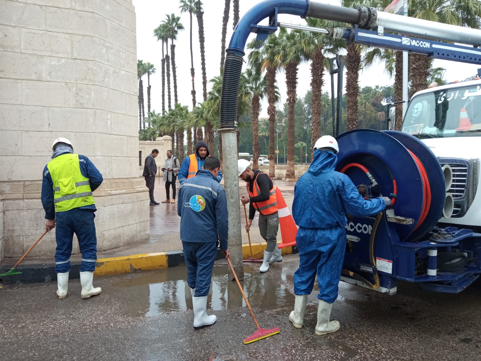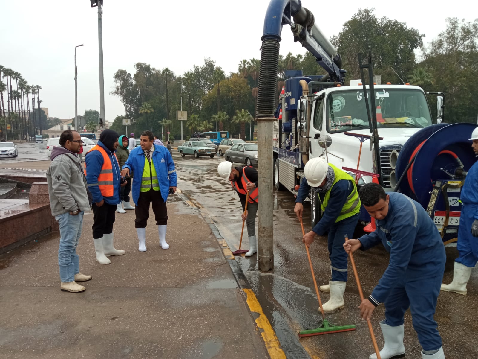 وذلك للتعامل مع هطول الأمطار كما تمت أعمال تطهير لبلاعات المطر وتسليك مواسير الصرف صحي.