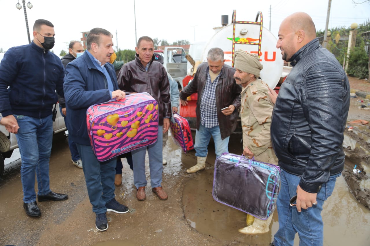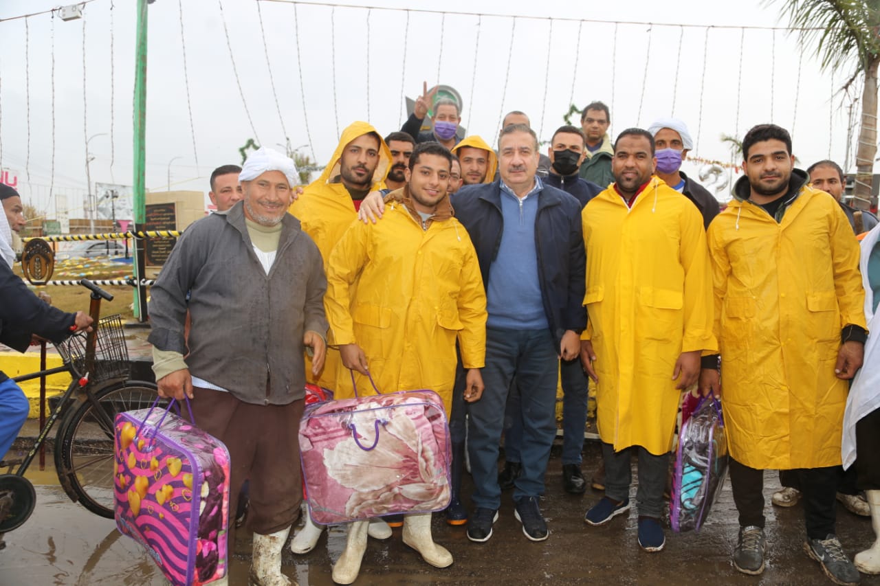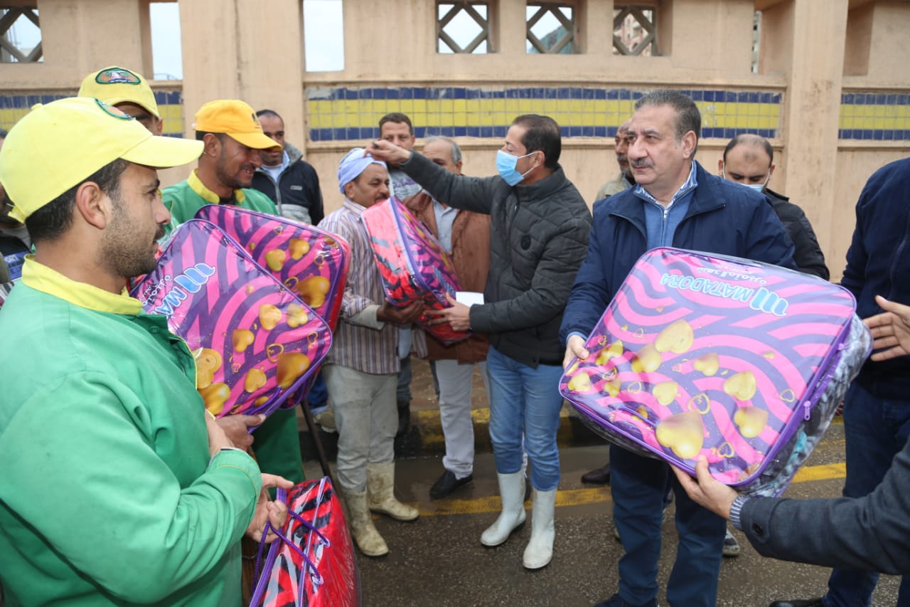 محافظ المنوفية يوزع بطاطين ويقرر صرف إعانة مالية للعمال | صور