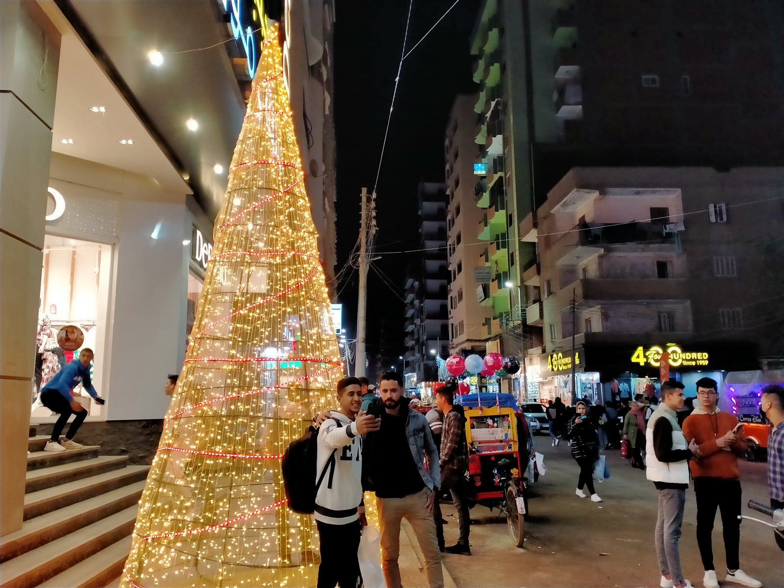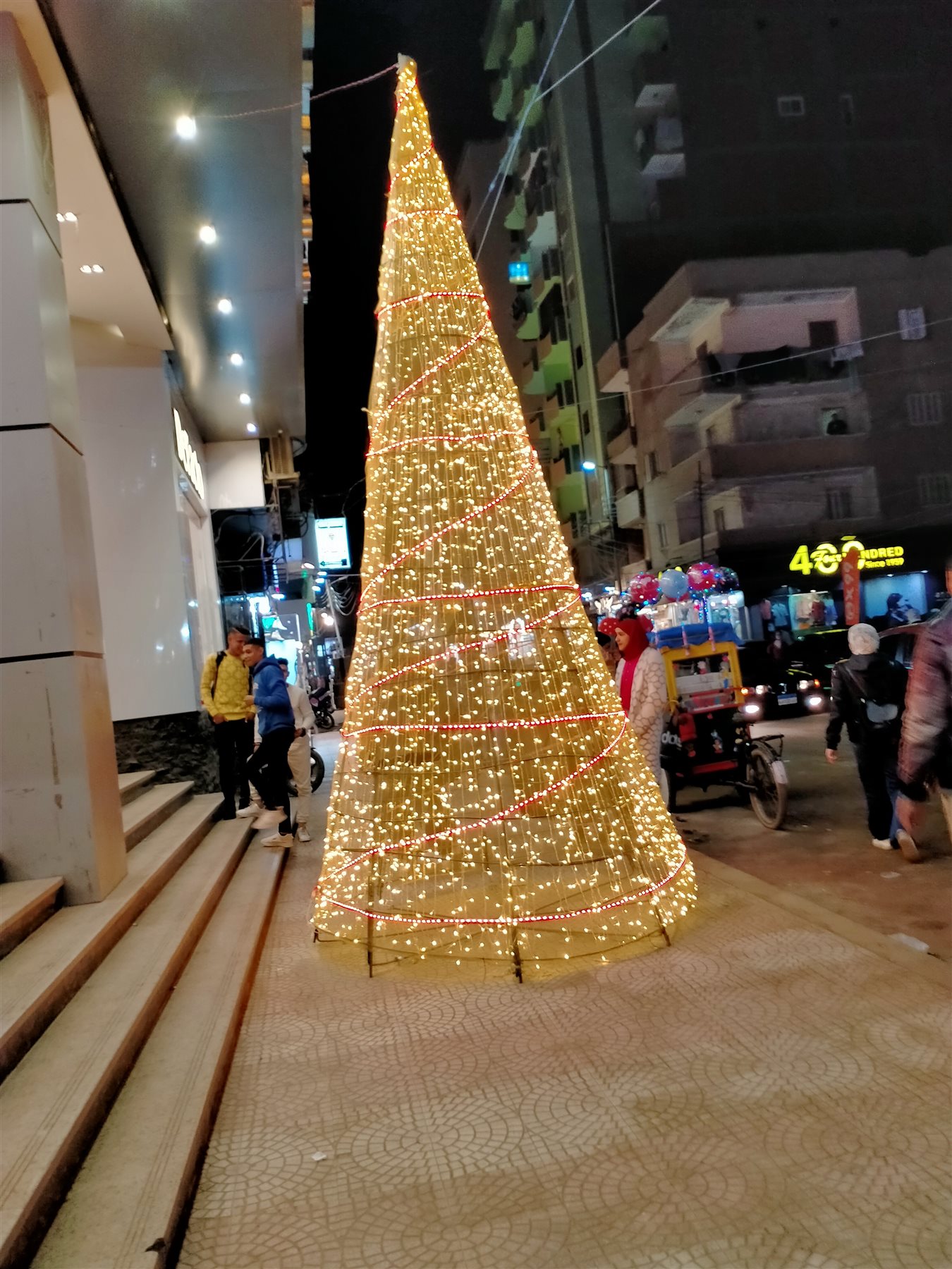 احتفل بعض شباب محافظة المنوفية، بحلول العام الجديد بالتقاط الصور التذكارية بجوار أكبر شجرة كريسماس بالمحافظة.