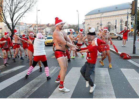 أما في المجر فيقام سباق غريب لسانتا كلوز نصف عارٍ، حيث يدشن السكان مسابقة يتسابق فيها الشباب بصحبة الفتيان بالملابس الداخلية في أجواء كرنفالية.