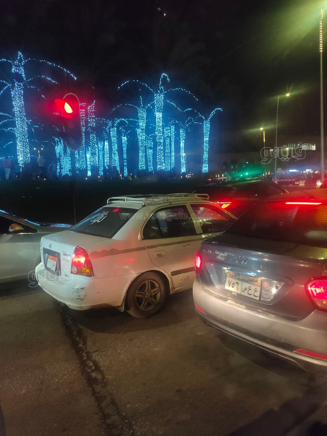شهد المحور المركزي المتجه إلى مدينة 6 أكتوبر والشيخ زايد ازدحامًا شديدًا وتدكسًا للسيارات بسبب احتفالات المواطنين بليلة رأس السنة، في الشوارع بشكل كبير.