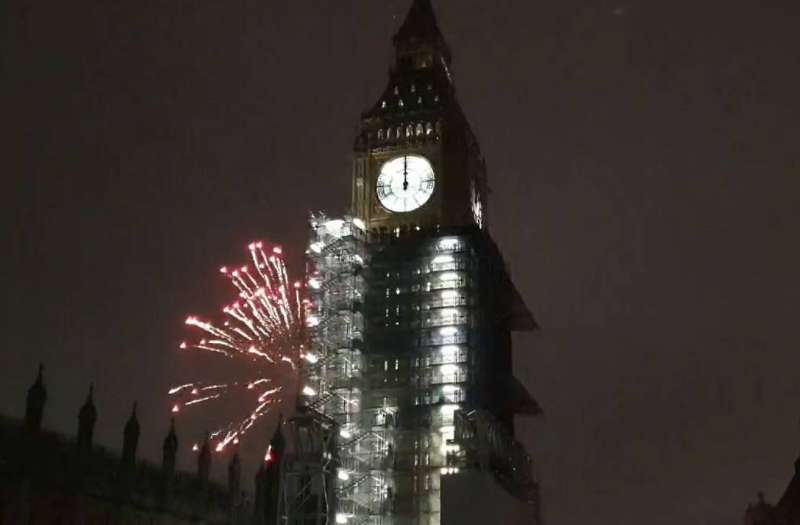 واستقبلت "بيج بن" العام الجديد بدقاتها التي كانت قد توقفت منذ أغسطس 2017، حين تم وضعها موقتًا خارج الخدمة، وأخضعت لمشروع ترميم مكثف.