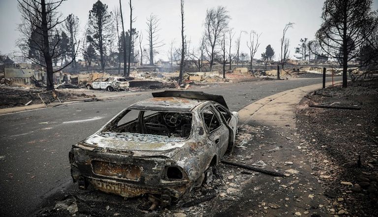 ودُمّر 500 منزل على الأقلّ في الحرائق واضطر عشرات آلاف الأشخاص للفرار، لكن لم تُسجَّل للساعة أيّ وفاة، والأمر أشبه بـ "المعجزة"، بحسب حاكم الولاية جاريد بوليس.