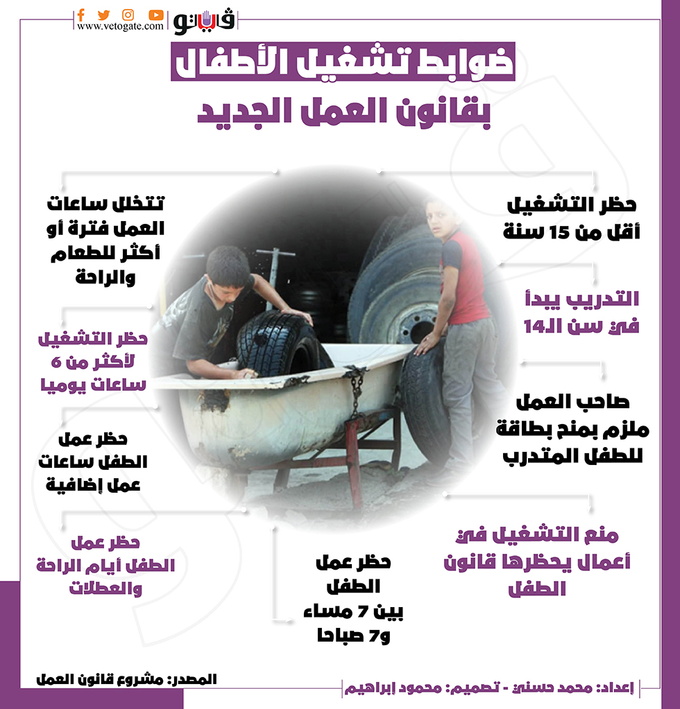ضوابط تشغيل الأطفال بقانون العمل الجديد | انفوجراف السبت 01/يناير/2022 - 06:49 م 1/1/2022 6:49:41 PM محمد حسني شارك طباعة 18 حجم الخط شارك طباعة