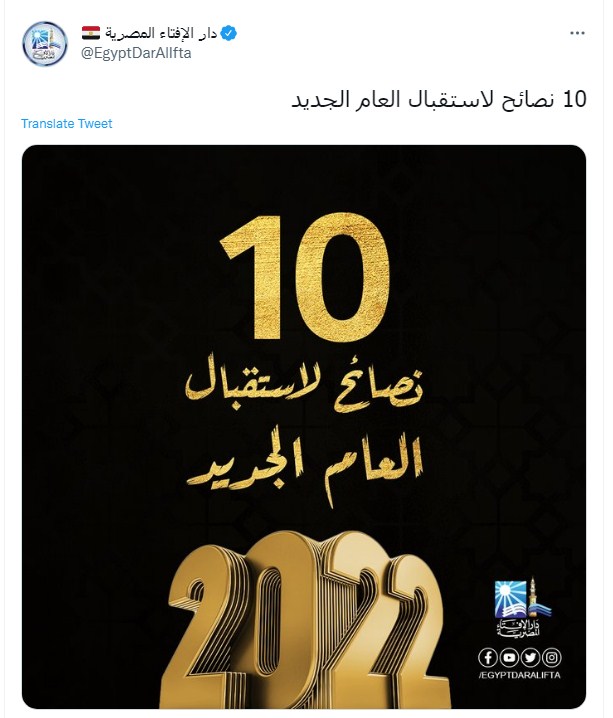 وكتبت دار الإفتاء في نصيحتها الأولى عبر تويتر: