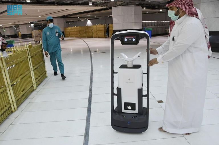 في اطار خطة المملكة العربية السعودية في دعم منظومة التعقيم، وفرت الرئاسة العامة لشؤون المسجد الحرام والمسجد النبوي في السعودية 11 روبوت للتعقيم داخل المسجد الحرام.
