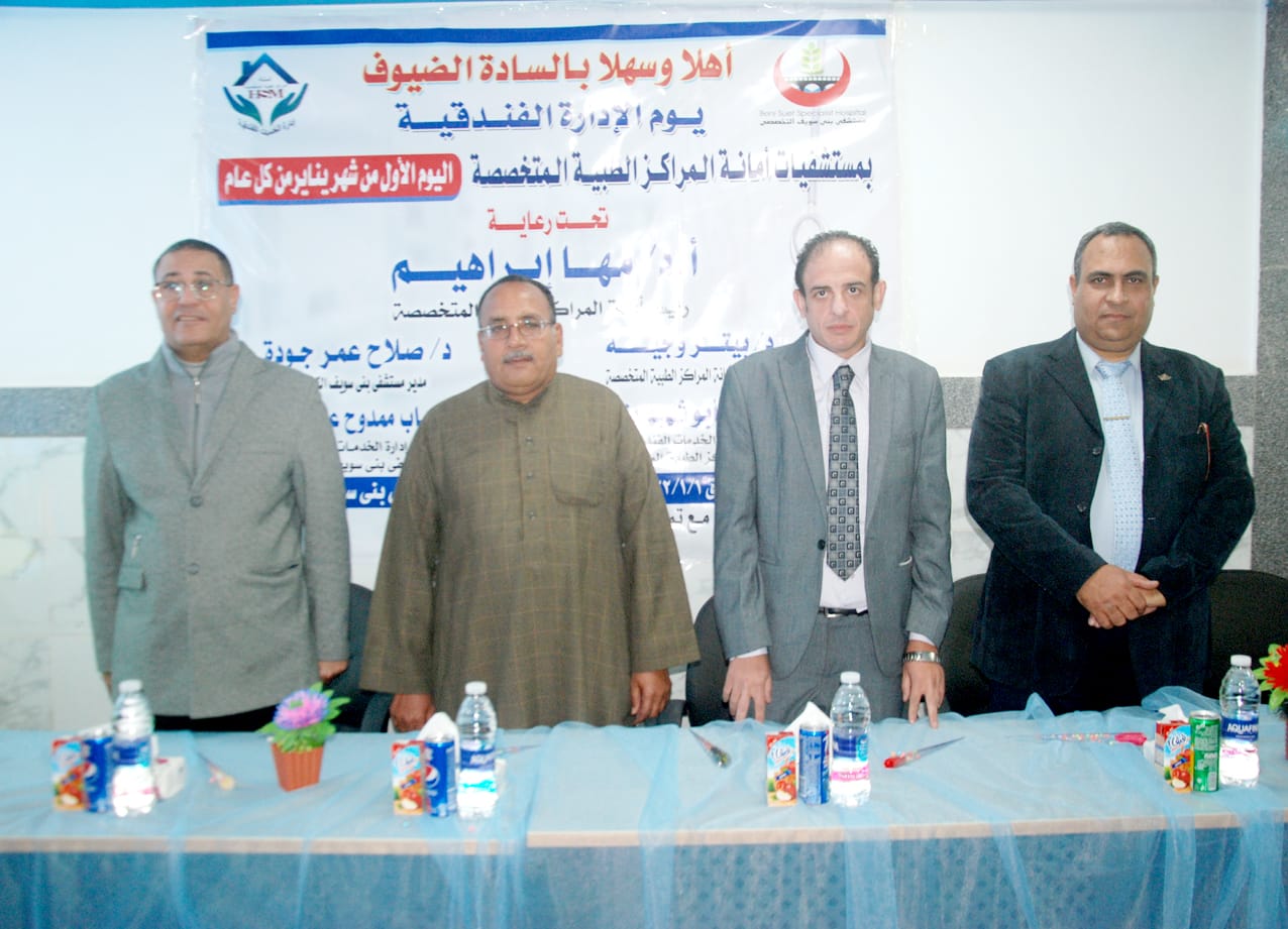أكد الدكتور صلاح عمر جودة، مدير عام مستشفى بنى سويف التخصصي، إن المستشفى احتفل باليوم الأول للإدارة الفندقية، الذي تقيمه مستشفيات أمانة المراكز الطبية المتخصصة، تحت رعاية الدكتورة مها ابراهيم، رئيسة أمانة المراكز الطبية.