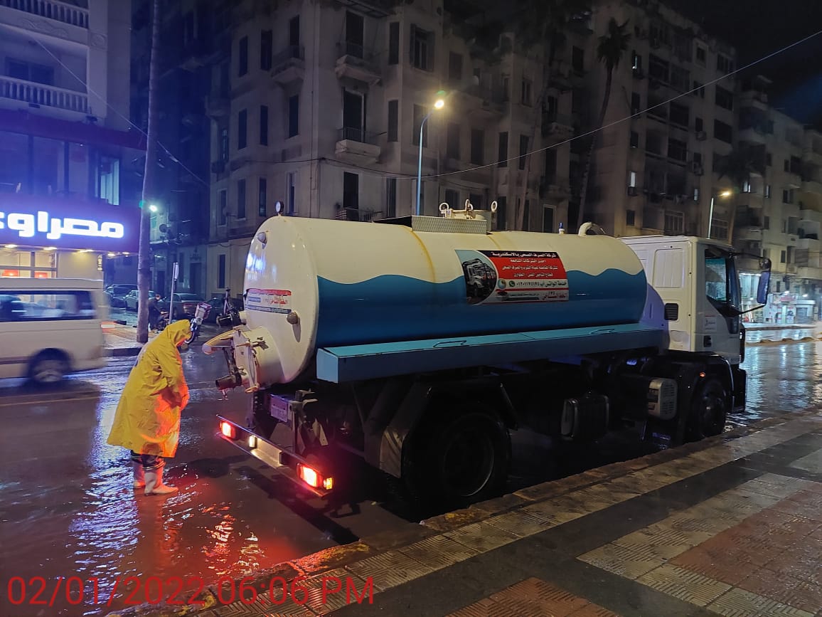 وقدم المحافظ الشكر والتقدير إلى رجال شركة الصرف الصحي وشركة المياه والنظافة والأحياء والمرور وجميع المرافق الخدمية على جهدهم المبذول وتواجدهم على مدار ثلاثة أيام متواصلة في الشارع للتعامل مع موجة الطقس البارد والأمطار الغزيرة التي تشهدها محافظة الإسكندرية.