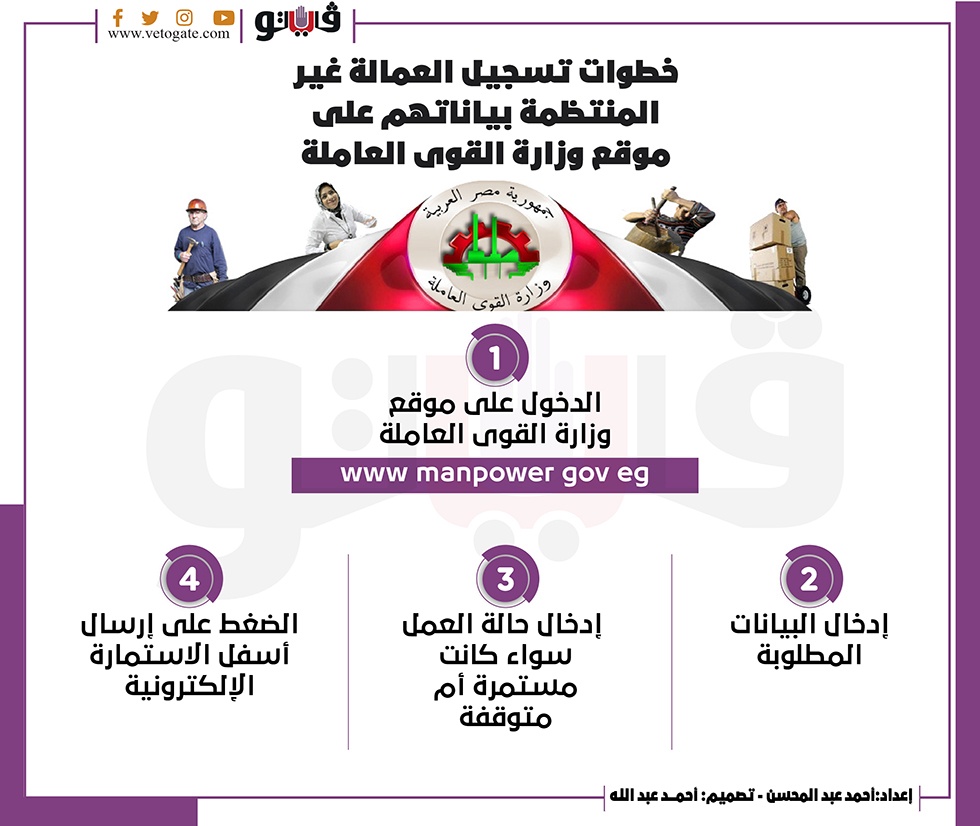 خطوات تسجيل العمالة غير المنتظمة بياناتهم على موقع وزارة القوى العاملة | انفوجراف الأربعاء 05/يناير/2022 - 11:00 م 1/5/2022 11:00:53 PM أحمد عبدالمحسن شارك طباعة 18 حجم الخط شارك طباعة وزارة القوى العاملة القوى العاملة العمالة غير المنتظمة موقع وزارة القوى العاملة الاستمارة الالكترونية تسجيل العمالة غير المنتظمة