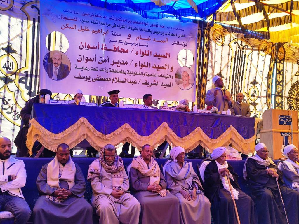 وسط أجواء من العفو والتسامح شهدت قرية الطوناب بمركز إدفو وبحضور نحو 4 آلاف مواطن مراسم الصلح بين عائلتى أحمد غنام وإبراهيم خليل حيث أناب اللواء أشرف عطية محافظ أسوان رئيس الوحدة المحلية لمركز ومدينة إدفو إبراهيم سليمان بالحضور وإلقاء كلمة المحافظ.