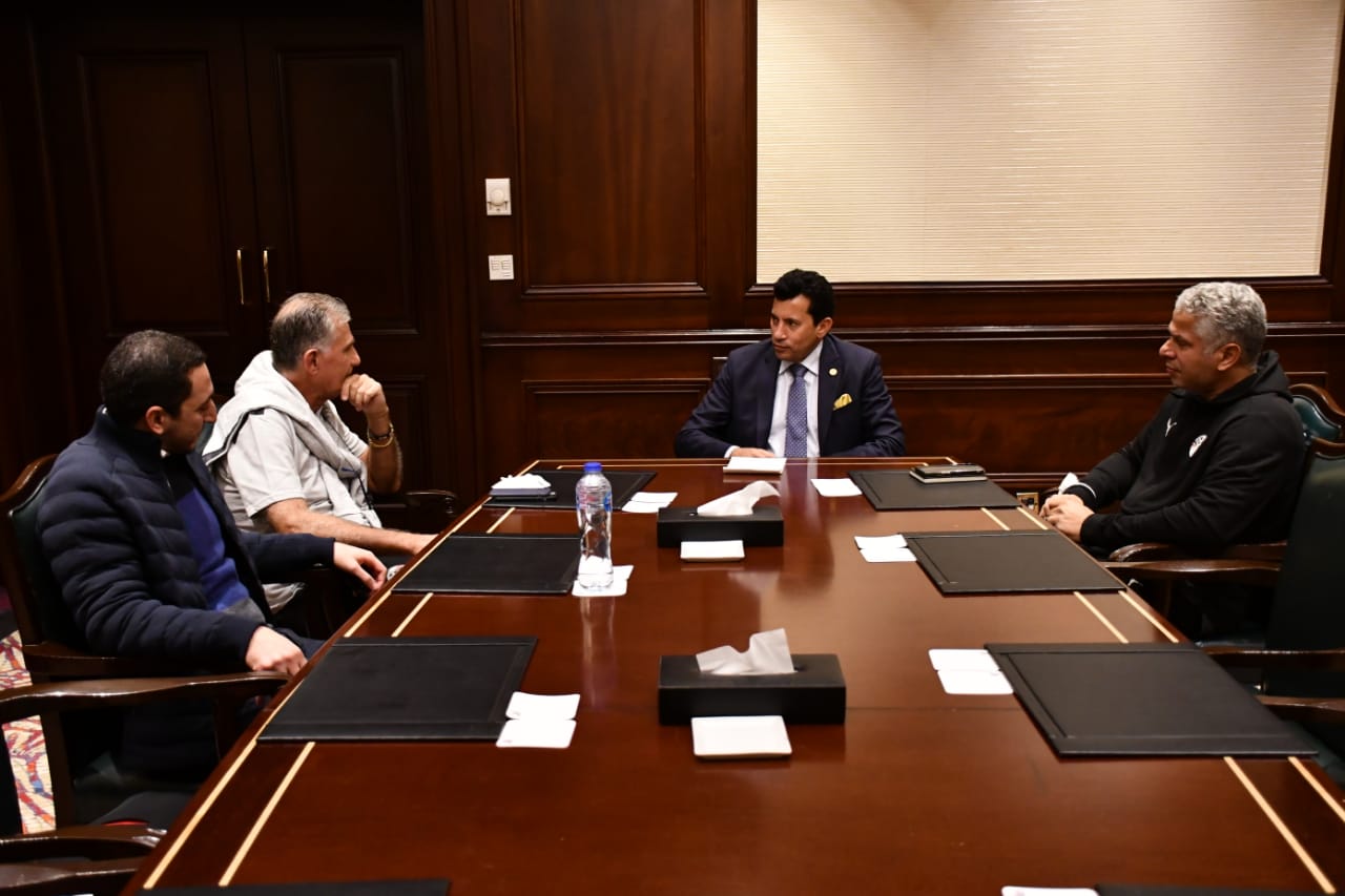 وزير الرياضة يلتقي الجهاز الفني للمنتخب استعدادا للمشاركة بأمم أفريقيا |صور