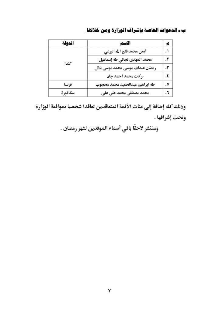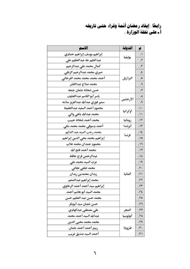 قالت وزارة الأوقاف ان عدد الأئمة والقراء الموفدين والمعارين إلى مختلف دول العالم مع بداية عام 2022م وصل الى (171) إماما وقارئا، ومازال الإيفاد مستمرًا.