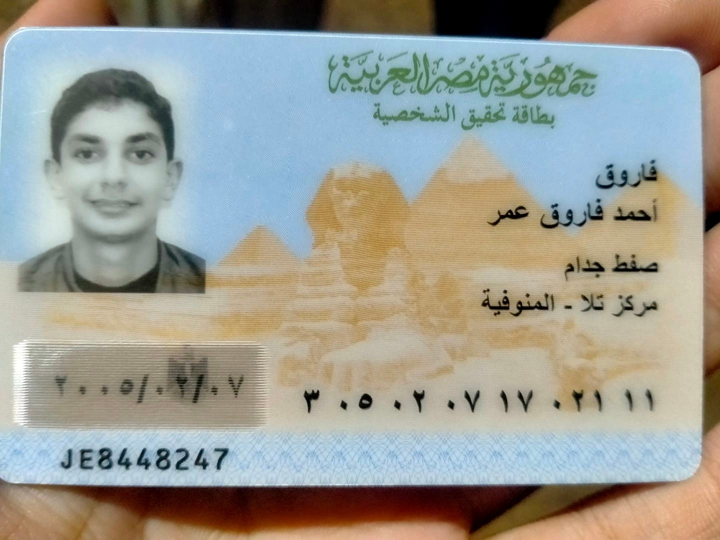 فاروق أحمد فاروق 16 سنة، يعيش بقرية صفط جدام التابعة لمركز تلا في محافظة المنوفية، بلغ السادسة عشرة من عمره، وحان وقت استخراج بطاقة شخصية، كما تنص على ذلك القوانين المصرية.