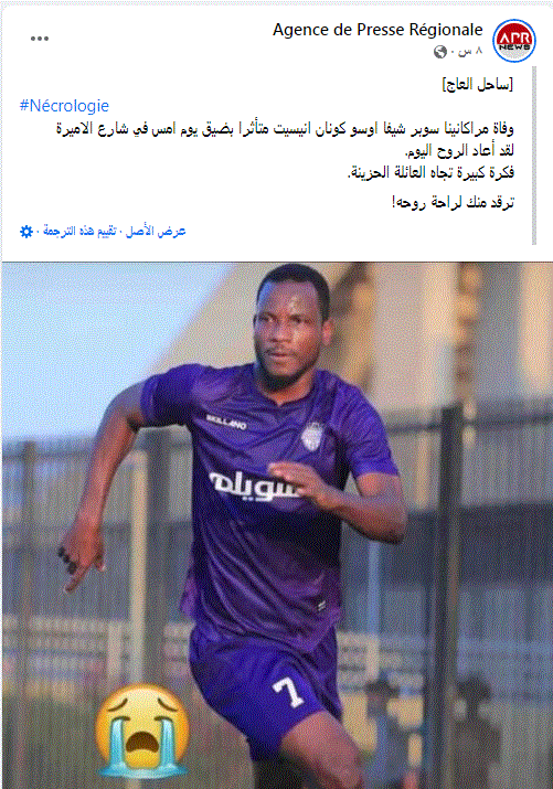 وأشارت الوكالة عبر حسابها الرسمي على فيس بوك: إن اللاعب توفي بعد تعرضه إلى تسمم، وتم نقله إلى أحد المستشفيات، ولكنه فارق الحياة.