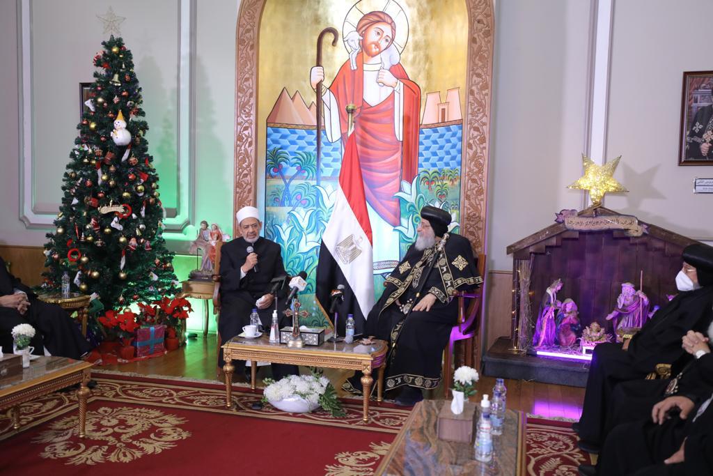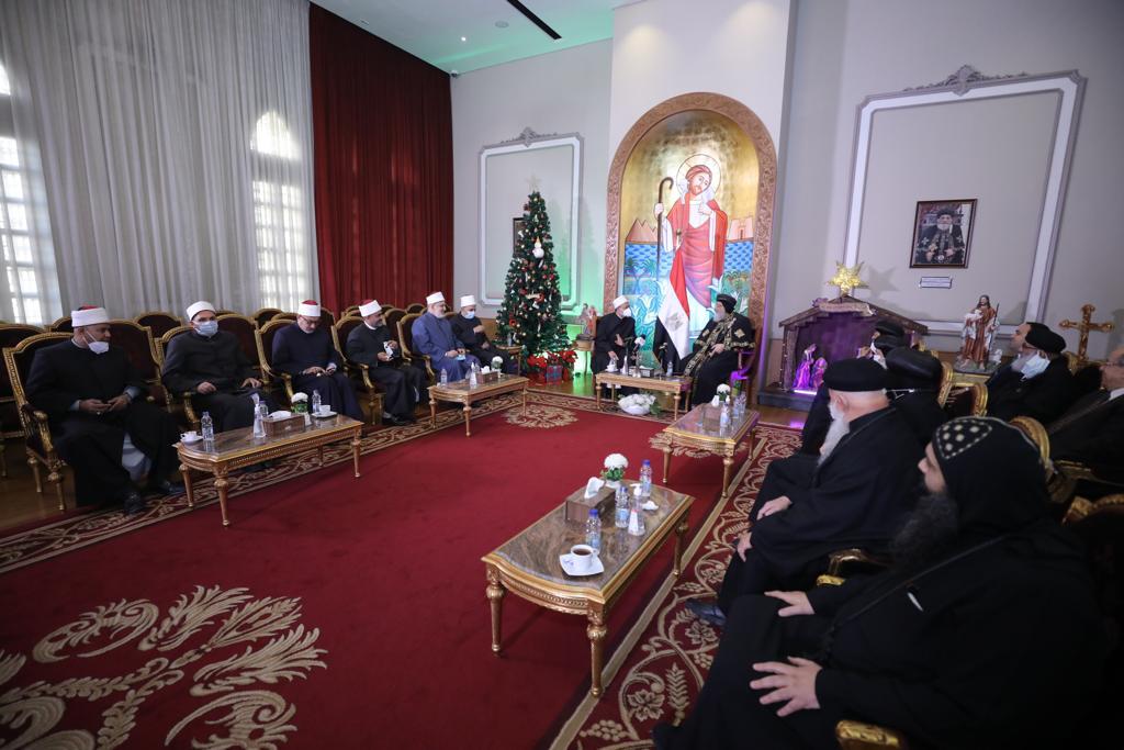 ترأس فضيلة الإمام الأكبر أ.د أحمد الطيب، شيخ الأزهر الشريف، اليوم الثلاثاء، وفد الأزهر، في زيارة إلى مقر الكنيسة الكاتدرائية المرقسية بالعباسية، لتهنئة قداسة البابا تواضروس الثاني، بابا الإسكندرية وبطريرك الكنيسة القبطية الأرثوذكسية، والإخوة المسيحيين بمناسبة «أعياد الميلاد».