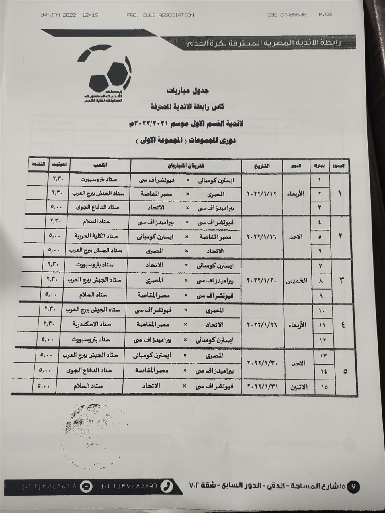 المجموعة الأولى: بيراميدز - الاتحاد - مصر للمقاصة - إيسترن كومباني - المصري - فيوتشر