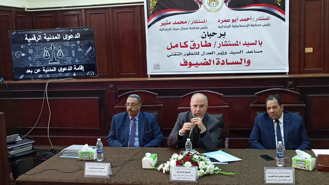 وعقد مساعد وزير العدل، اجتماعًا حضره كل من رئيس محكمة الإسماعيلية الابتدائية ورئيس محكمة شمال سيناء وعدد من القضاة والمحامين لمناقشة ماسيتم انجازه خلال الفترة المقبلة.