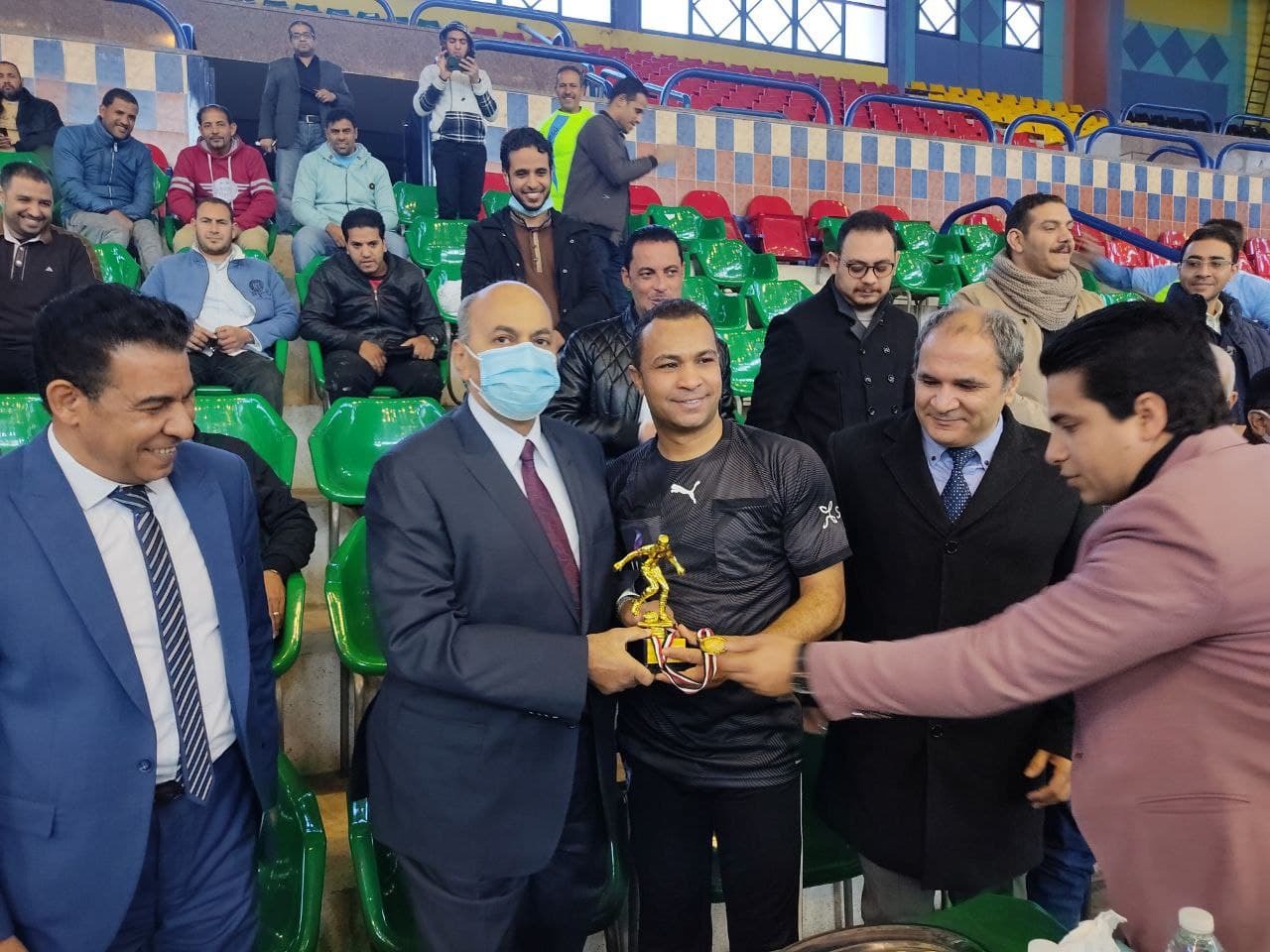 سلم الدكتور مصطفى عبد النبي عبد الرحمن، رئيس جامعة المنيا، كأس دورة كرة القدم الخماسي، لفريق مركز تكنولوجيا المعلومات الحاصل على المركز الأول في دورة كرة القدم الخماسي للعاملين التي نظمها صندوق الزمالة بكلية الزراعة للعام الخامس.