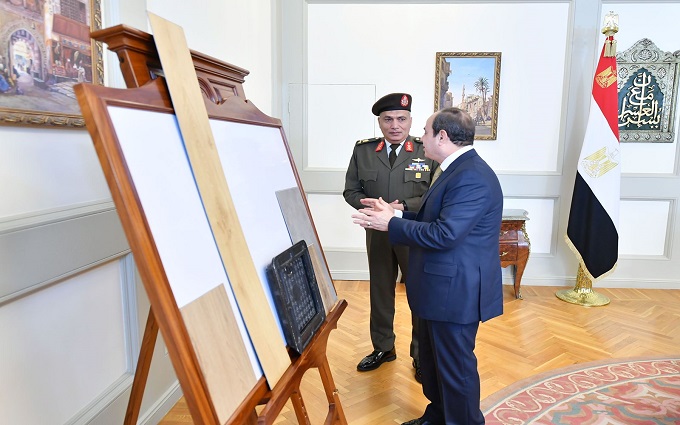 كما اجتمع الرئيس السيسي مع اللواء أمير سيد أحمد مستشار رئيس الجمهورية للتخطيط العمراني، واللواء أركان حرب إيهاب الفار رئيس الهيئة الهندسية للقوات المسلحة، واللواء أشرف العربي رئيس المكتب الاستشاري للهيئة الهندسية، والعميد عبد العزيز الفقي مساعد رئيس الهيئة الهندسية لتصميمات الطرق، والدكتور طارق الخضيري مدير مصنع "إبداع.