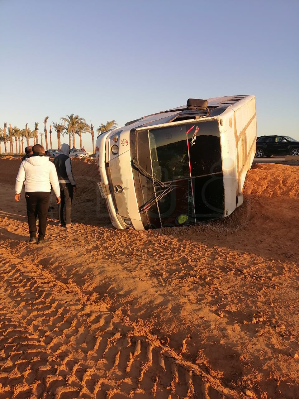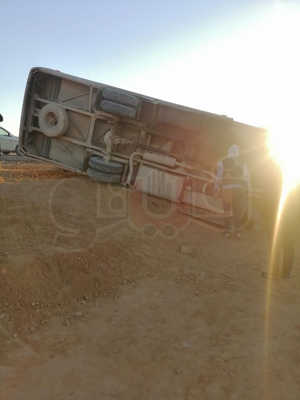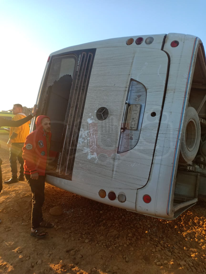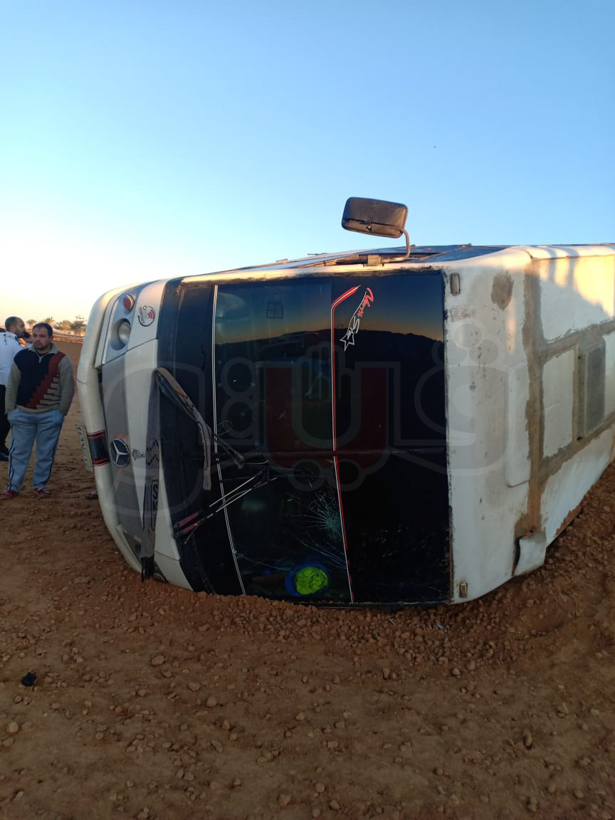 الصور الأولى لحادث انقلاب أتوبيس مطروح وإصابة 20 شخصًا