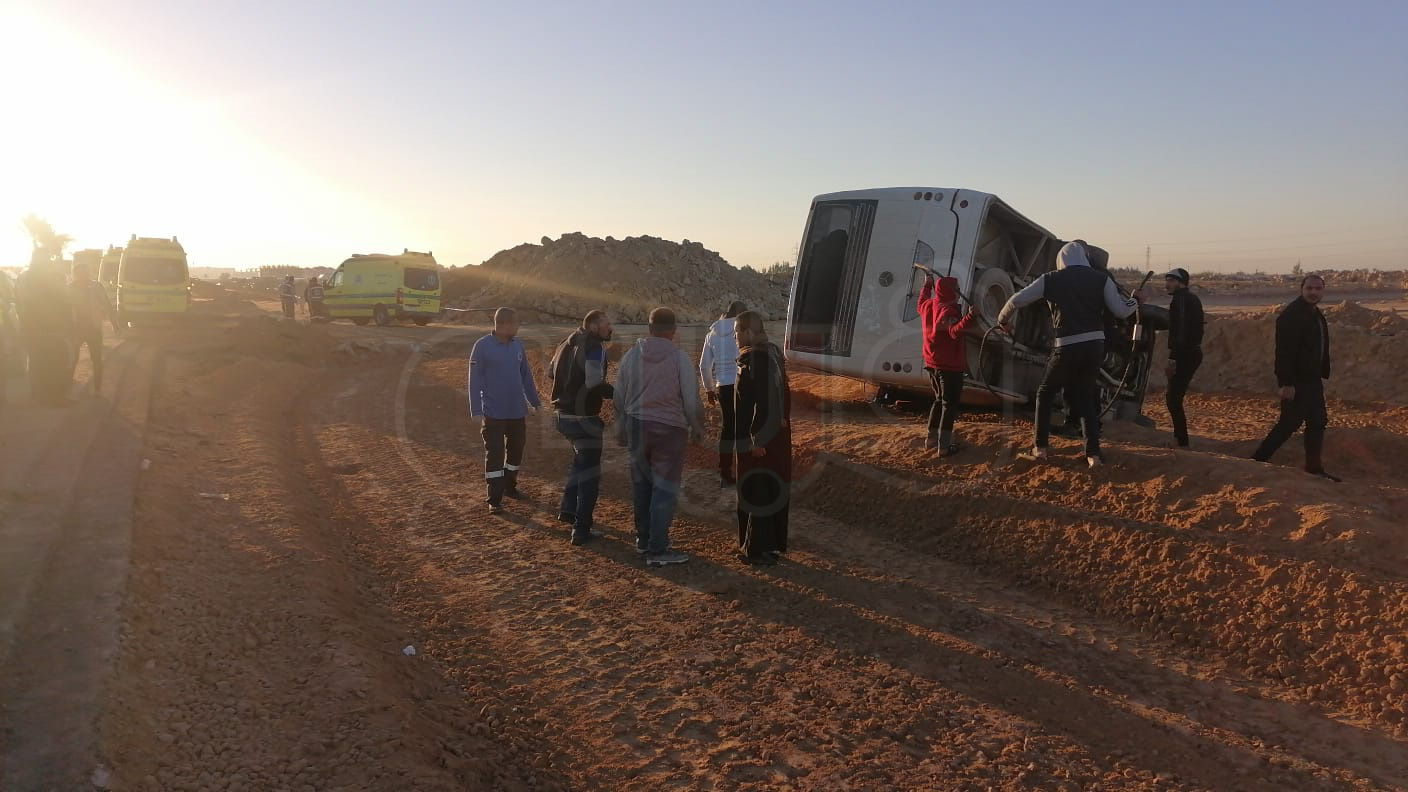 وحصلت "فيتو" على أول صور من موقع حادث انقلاب أتوبيس بطريق الإسكندرية - مطروح الساحلي