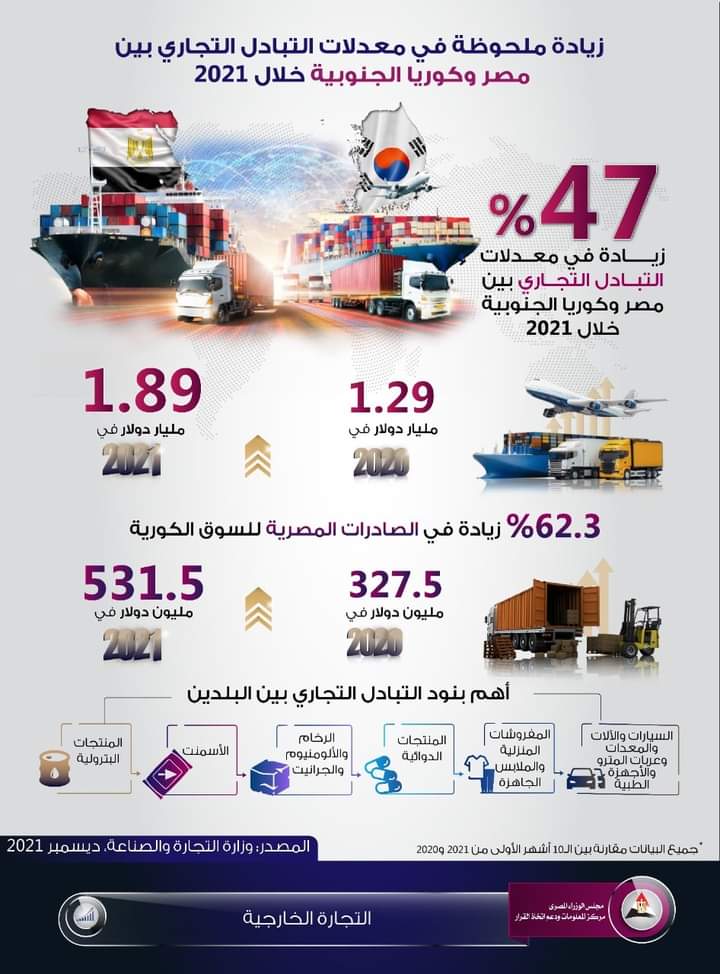 47 % زيادة في معدل التبادل التجاري بين مصر وكوريا الجنوبية 2021 | إنفوجراف