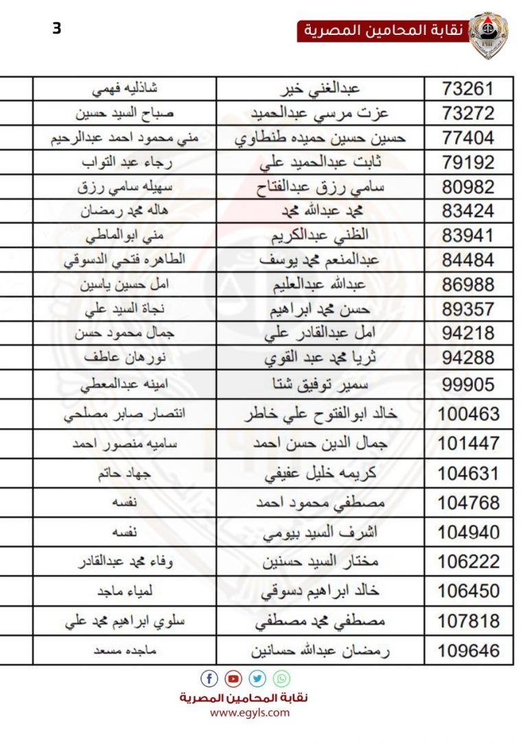 بالأسماء.. ١٠١ أسرة من ورثة المحامين يصرفون المعاش خلال يناير