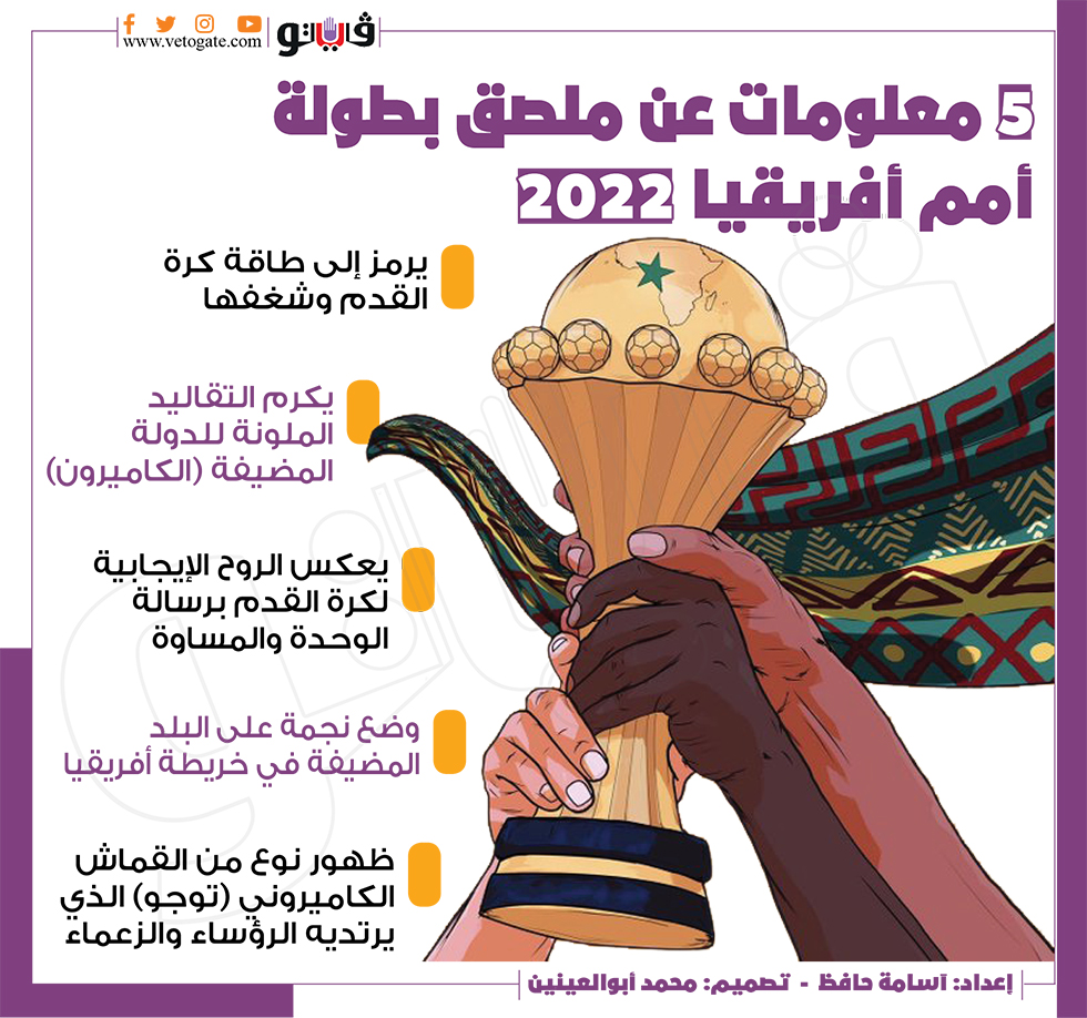 5 معلومات عن ملصق بطولة أمم أفريقيا 2022 | فيديوجراف الأحد 09/يناير/2022 - 11:42 ص 1/9/2022 11:42:54 AM ملصق أمم أفريقيا اسامة حافظ شارك طباعة 18 حجم الخط شارك طباعة الكاميرون افريقيا رسالة الوحدة أمم أفريقيا 2021