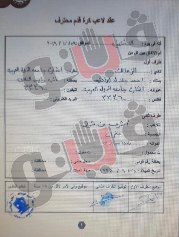 شاهد صورة من عقد اللاعب مع الزمالك.