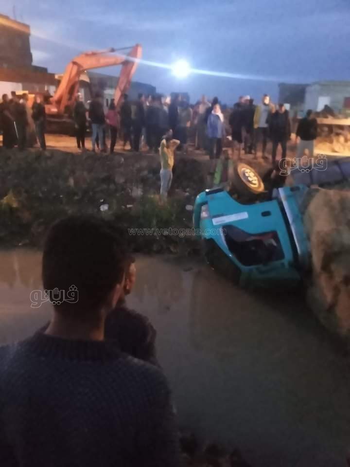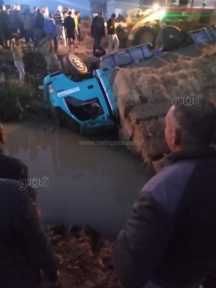 سقوط سيارة محملة بقش الأرز في ترعة الأمير بالشرقية.. والأهالي ينقذون سائقها |صور
