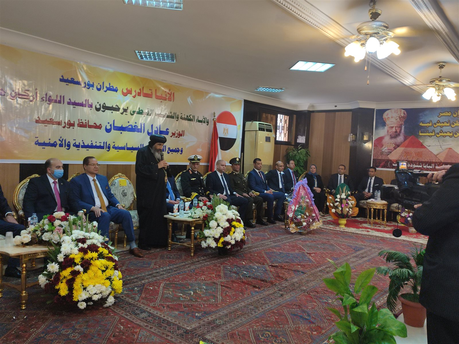 استقبلت كاتدرائية بورسعيد صباح اليوم الجمعة محافظ بورسعيد اللواء ” عادل الغضبان” ومدير أمن المحافظة اللواء حسني عبد العزيز ولفيف من الشخصيات العامة والأئمة والشيوخ وذلك بحضور كهنة مطرانية بورسعيد وعلى رأسهم مطران محافظة بورسعيد وضواحيها الأنبا تادرس وذلك لتقديم التهنئة للأخوة الأقباط جميعا بمناسبة عيد الميلاد المجيد.