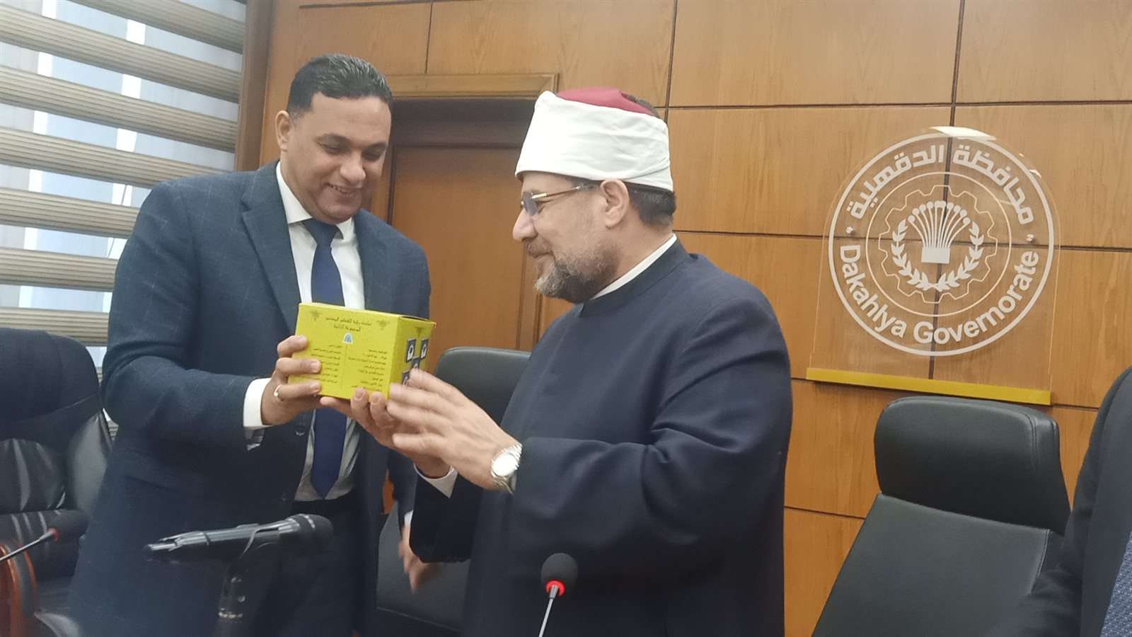ووجه وزير الأوقاف بتوزيع نسخة كتب الاصدارات الحديثة علي الأئمة واهدي نسخة منها لمحافظ الدقهلية.