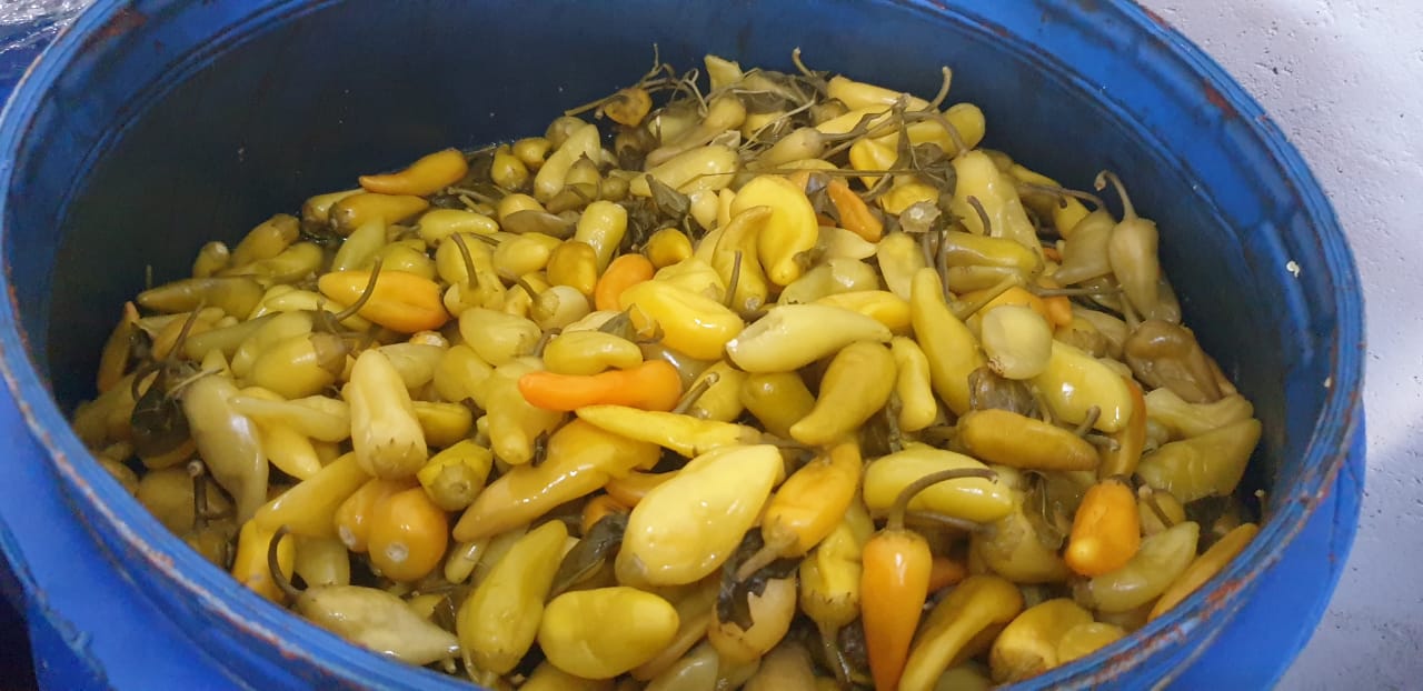 وعثر على 1000 كيلو جرام من المخللات داخل براميل بدون بيانات تجارية وبها تغير في الخواص الطبيعية.