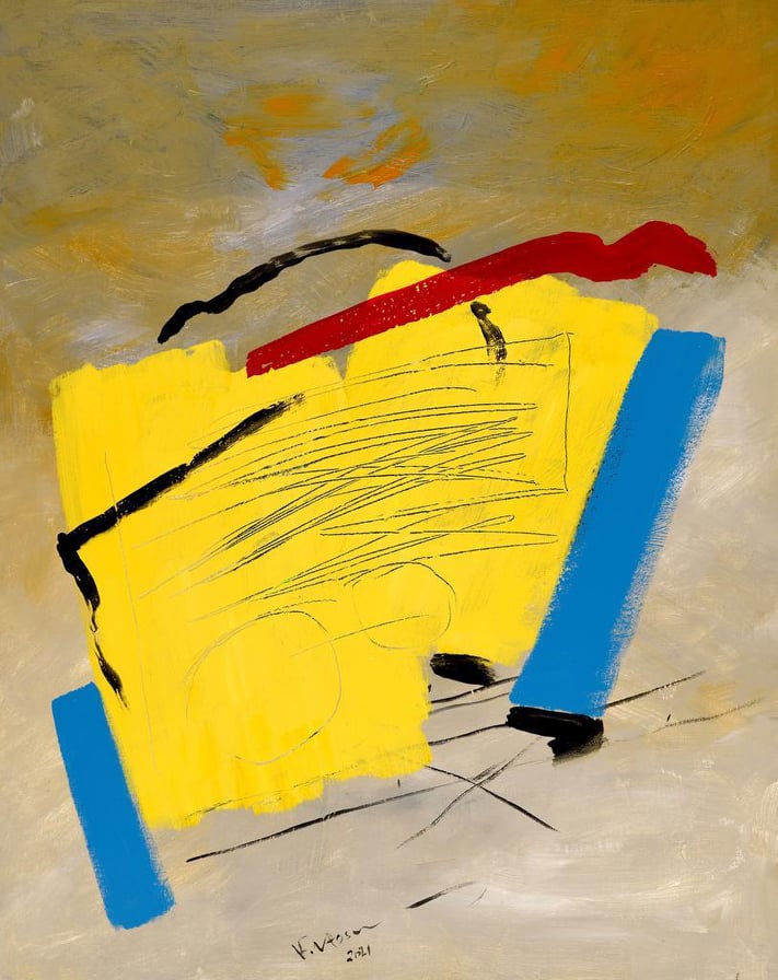 ويضم المعرض 45 عملًا فنيًا من إنتاج عام 2020 و2021 بأسلوب تجريدى والذى يتميز بها الفنان فاروق حسنى، بالإضافة إلى 7 أعمال نحت مستوحاة من أعمال حسنى التجريدية مهداه له ومنفذة من الفنان النحات البحرينى خالد فرحان.