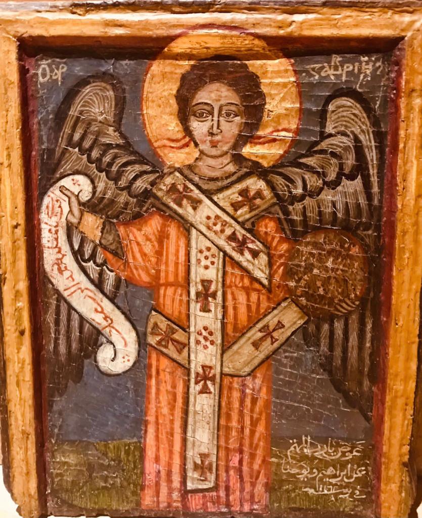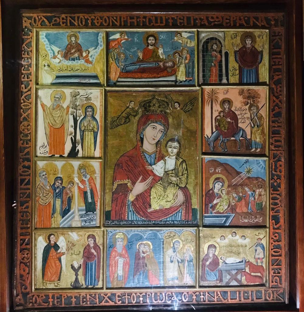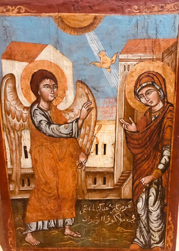 كما يضم المعرض أيقونة العائلة المقدسة والقديس يوحنا المعمدان، وأيقونة ميلاد السيد المسيح، وأيقونة البشارة والتي يظهر فيها الملاك أمام السيدة العذراء يبشرها بحملها ممسكًا بيده اليسرى فرعًا من الزهور، ويوجد طائر في الوسط.