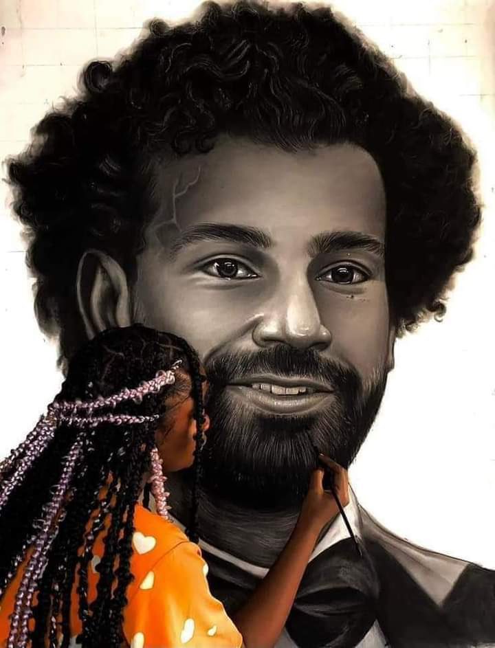 ورسمت الفتاة الكاميرونية صورة "بورتريه" رائع للأسطورة محمد صلاح على طريقتها الخاصة احتفالًا بقدومه إلى الكاميرون.