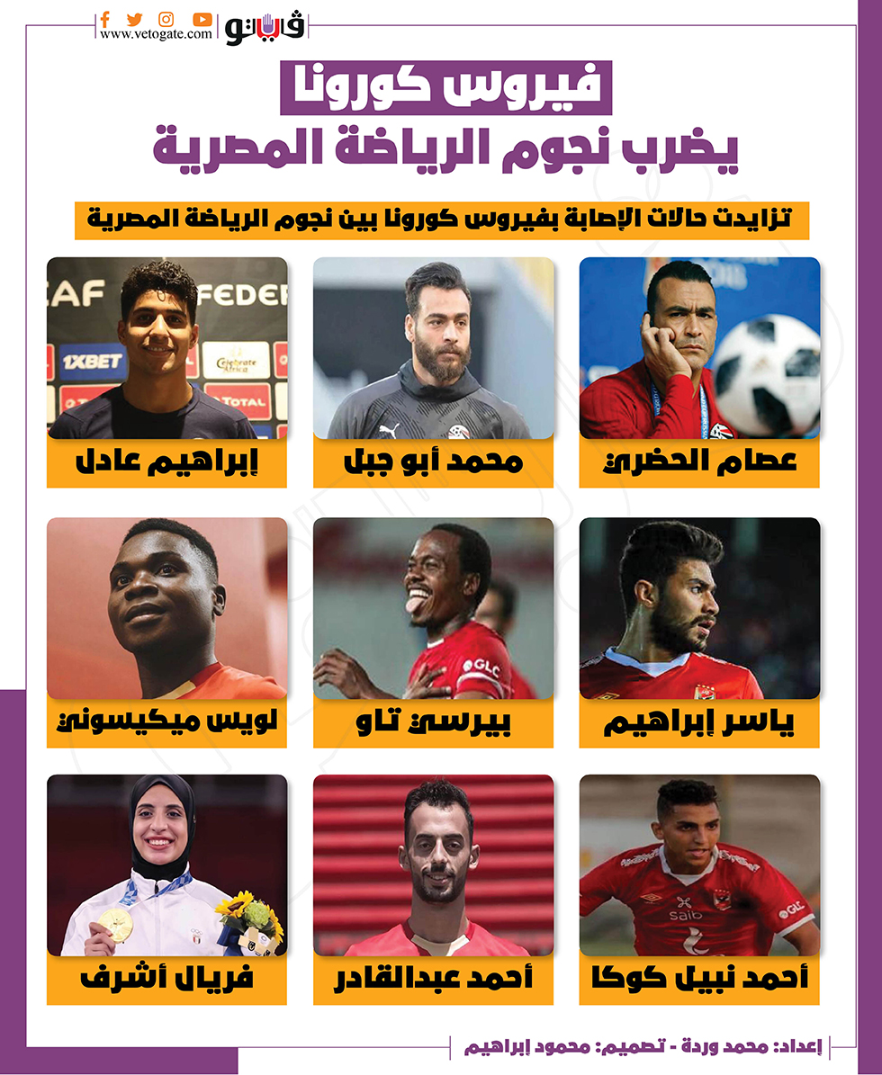 فيروس كورونا يضرب نجوم الرياضة المصرية| إنفوجراف الإثنين 10/يناير/2022 - 07:50 م 1/10/2022 7:50:26 PM فريال أشرف محمد وردة شارك طباعة 18 حجم الخط شارك طباعة فيروس كورونا الأهلي الزمالك المنتخب الوطني فريال أشرف