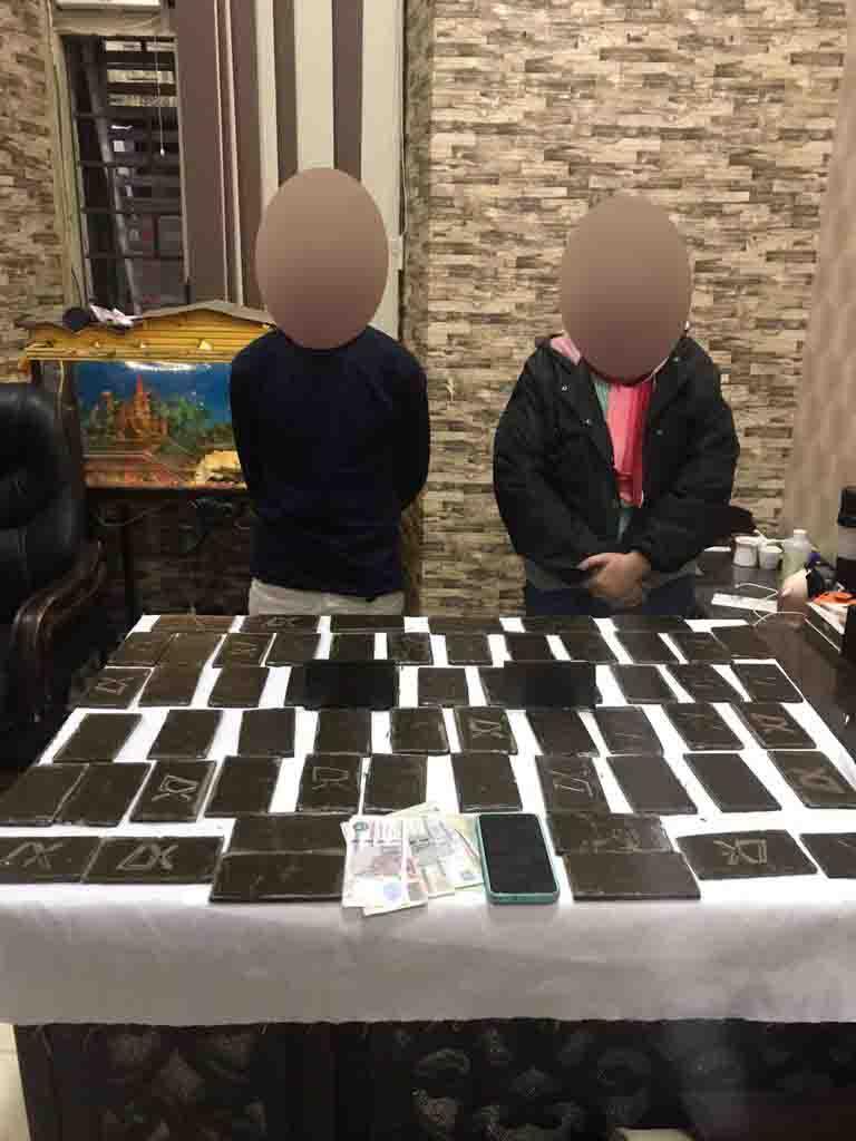 عقب تقنين الإجراءات أمكن ضبطه وبصحبته (إحدى السيدات "لها معلومات جنائية") حال تواجدهما بدائرة قسم شرطة المنشية وبحوزتهما ( كمية من مخدر الحشيش وزنت 5،7 كيلو جرام – مبلغ مالى - هاتف محمول).
