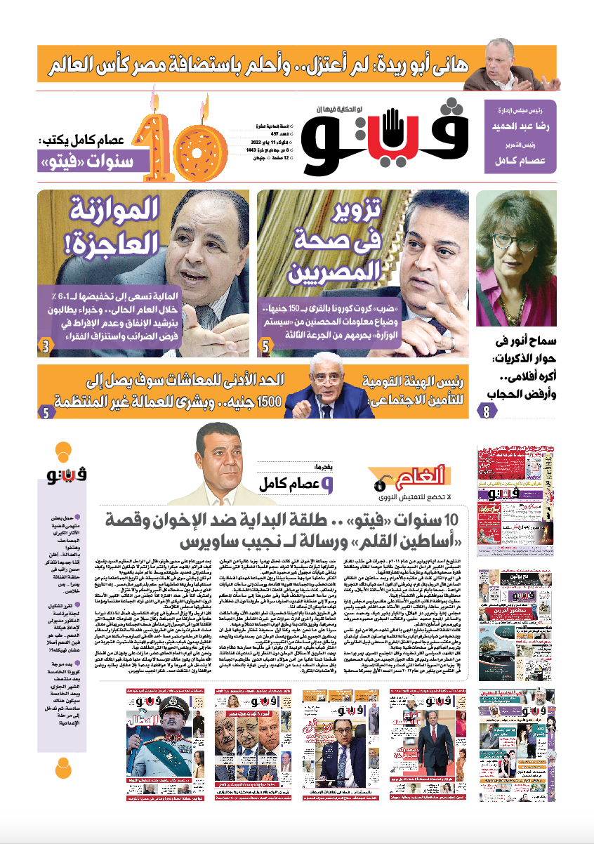 تنشر فيتو في عددها الجديد عددًا من الموضوعات والملفات الهامة بمناسبة مرور 10 سنوات علي بدايتها في بلاط صاحبة الجلالة.