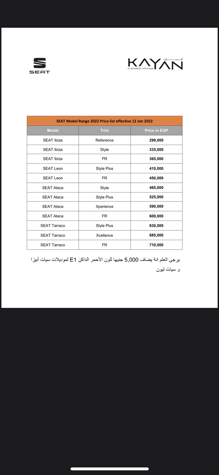 وجاءت الزيادة الجديدة لطرازات سيات تاراكو التي ارتفع سعرها بقيمة 15 ألف جنيه وقدمت الزيادة لكل فئات السيارة الثلاثة في السوق المحلية.
