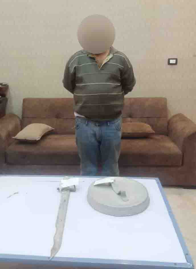 وعقب تقنين الإجراءات أمكن ضبطه، وبحوزته (الدرع المعدنى – السلاح الأبيض)، وبمواجهته أقر بارتكابه الواقعة وعلل ذلك لقيامه بتعاطى الأقراص المخدرة وتم اتخاذ الإجراءات القانونية وجارى العرض على النيابة العامة.